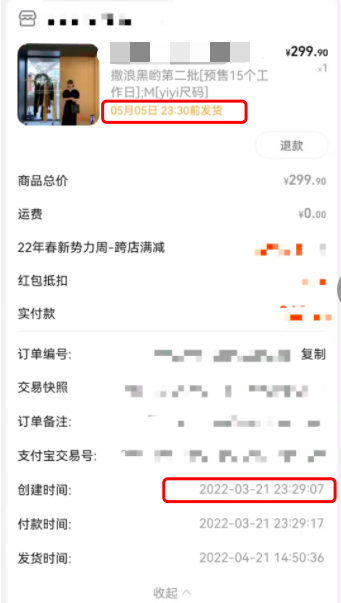 其中,网红女装店铺更是超长预售的“重灾区”。热衷在网红女装店购买衣服的谢琦(化名)向红星资本局展示了一笔最近的订单。