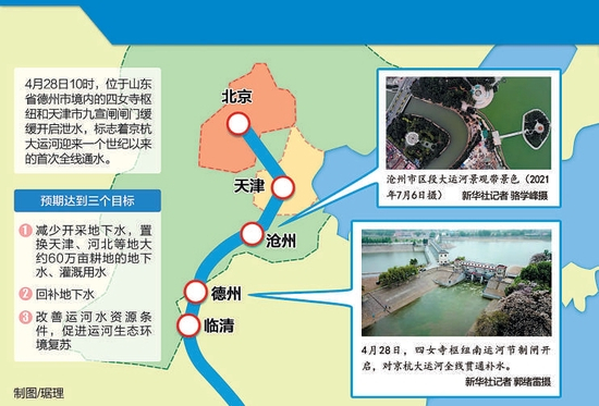 (原标题:京杭大运河百年来首次全线通水 水挽京津冀 运河绽新颜)