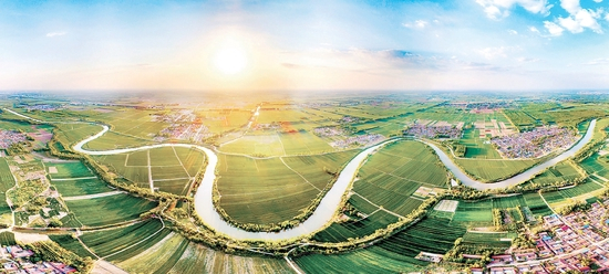 古人通过增设人工弯道,达到降低水流流速的目的,既可满足河道行洪需要,又能有效提高通航质量,综合效益被归纳为“三湾抵一闸”。图为南运河德州段德城区二屯镇的杨庄村和丰乐屯村的“三湾抵一闸”处。 刘克政摄