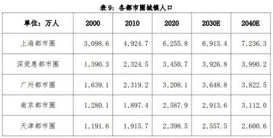 2、常住人口预测:预计2040年我国人口约13.45亿,人口将继续向大都市圈、城市群集聚
