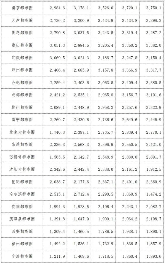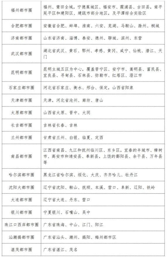 2019年2月,国家发改委发布《关于培育发展现代化都市圈的指导意见》要求,以同城化为方向建设1小时通勤圈,标志着中国进入城市群都市圈时代。按照2020年常住人口进行排序,上海、广州、深莞惠、济南、石家庄、南京、天津、青岛、重庆、武汉为前十大都市圈。需要注意的是,部分都市圈范围有重叠,比如上海都市圈与杭州、苏锡常、宁波都市圈有重叠;部分都市圈县级单位数据或城区数据缺失,多用地级市全域近似替代,如广州、南昌、西安、郑州都市圈等;北京都市圈尚无明确的文件和规划,若以1小时通勤圈为标准,北京都市圈包含北京市大部分区域以及廊坊北三县、固安、涿州等地,计算时也以地级市全域替代。