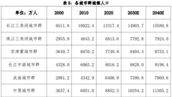 2.5 都市圈城市群:未来人口继续向大城市所在都市圈城市群集聚,长三角、珠三角人口年均增量合计超百万