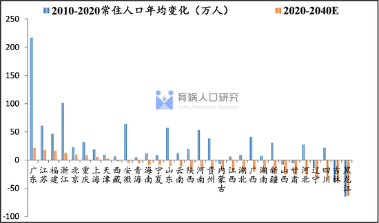 2.3省级:未来二十年粤苏闽浙人口集聚、东北三省人口继续流出