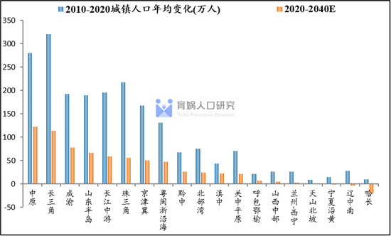 2.5都市圈城市群:未来人口继续向大城市所在都市圈城市群集聚,长三角、珠三角人口年均增量合计超百万