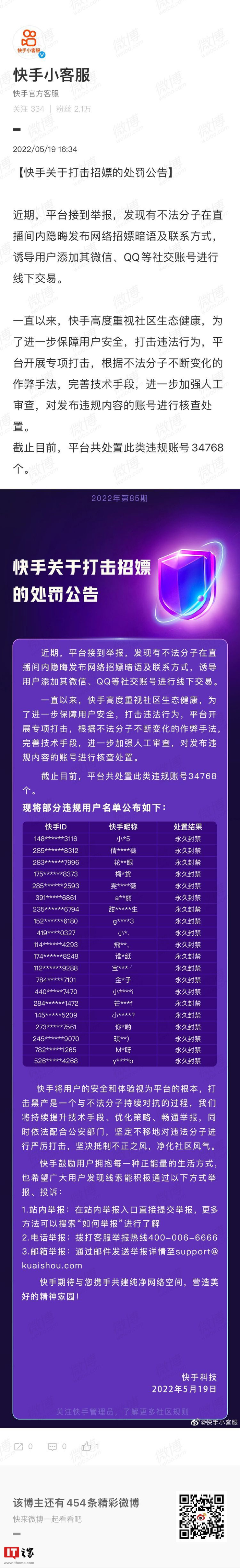 快手打击网络招嫖,处置此类违规账号 34768 个