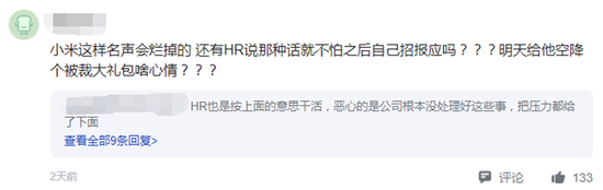 另一网友吐槽小米此举“名声会烂掉的”,并质问小米HR,如果自己被空降被裁大礼包是啥心情?