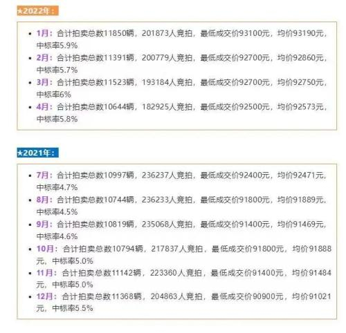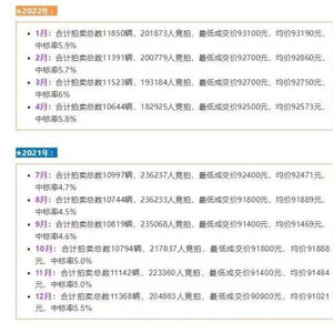 值得一提的是,在合计拍卖总数相对稳定的情况下,参与竞拍沪牌人数已连续6个月下降,中标率也创下近一年新高。