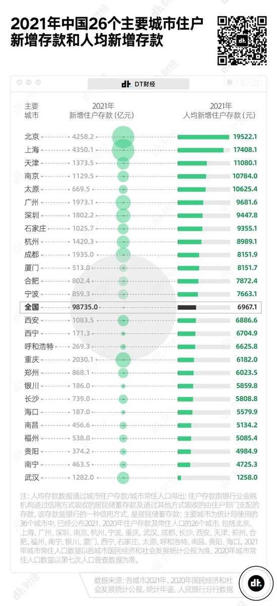 今天,DT君就来研究一下:到底哪些城市住户最能存钱?过去的2021年,他们都存下了多少钱?