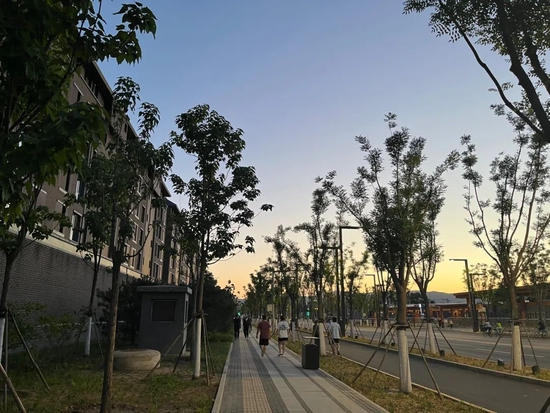 ▲ 夕阳时分,万柳的住户们外出散步,十分安逸。钟艺璇 / 摄