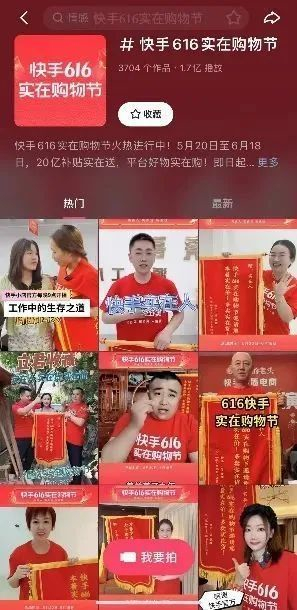 而快手则是推出“616实在购物节”。跟抖音一样,快手主要还是以直播电商为核心,活动期为5月20日至6月18日。今年快手依旧专注于“实在”“接地气“的关键词,推出了包含宠粉日、排位赛、挑战赛等多项核心玩法,基于直播间的多元化场景,主播在互动涨粉同时冲击销量。