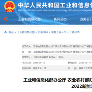 工信部等四部门发布关于开展2022新能源汽车下乡活动的通知