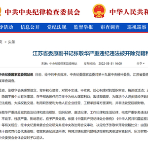 5月31日,中央纪委国家监委官网发布消息,日前,经中共中央批准,中央纪委国家监委对第十九届中央候补委员、江苏省委原副书记张敬华严重违纪违法问题进行了立案审查调查。