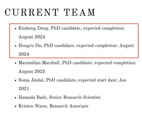 加德纳教授个人网站显示,目前她的团队由6名成员组成,其中包括两名来自中国的博士生,董恩盛和杜鸿儒。