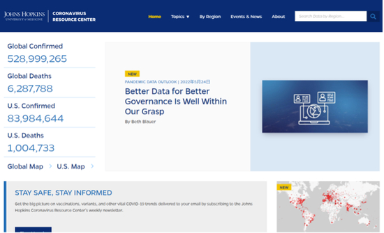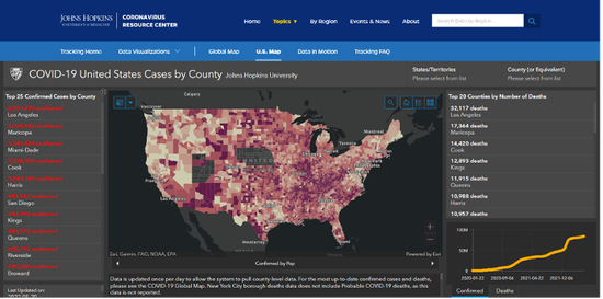 约翰斯·霍普金斯大学疫情数据地图。