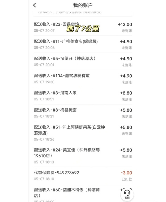可送外卖并非长久之计。作为兼职,可以“佛系”地一单一单派送,但全职骑手为了赶时间都会一抢就是五六单。更重要的是,众包骑手没有五险一金,收入也不稳定。