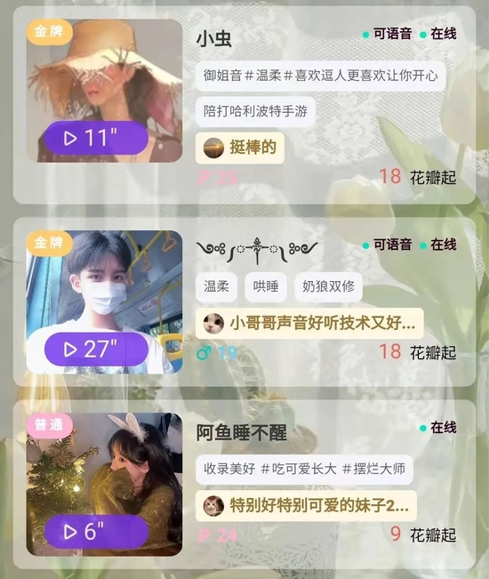 与价格昂贵,需要签署保密协议和知情同意书的正规心理咨询不同,陪聊价格相对较低,以线上连麦、文语(文字+语音条)为主要服务方式,削弱了心理疾病患者的心理壁垒,消费者参与的门槛相对较低。