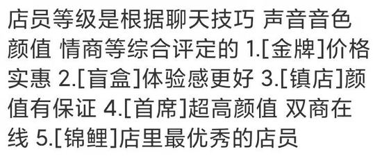 好奇心驱使着她找到客服询问相关的购买信息,在盲盒、金牌、镇店、男女神、首席、锦鲤几个级别纠结时,客服推荐她先购买盲盒体验一下,就是这一次体验,她遇见了那个男人。
