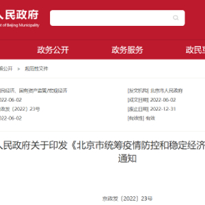 原标题:北京市人民政府关于印发《北京市统筹疫情防控和稳定经济增长的实施方案》的通知