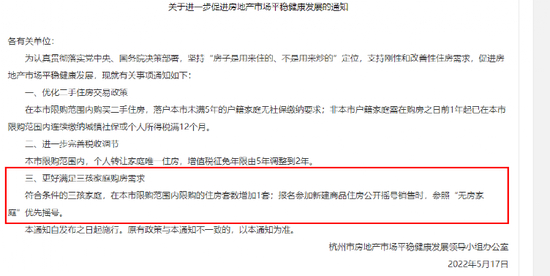 例如,鼓励多胎买房。5月17日,杭州市房地产市场平稳健康发展领导小组办公室发布《关于进一步促进房地产市场平稳健康发展的通知》(以下简称《通知》)。