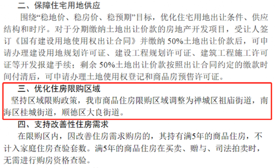 通知第三条指出,“坚持区域限购政策,我市商品住房限购区域调整为禅城区祖庙街道,南海区桂城街道顺德区大良街道”。