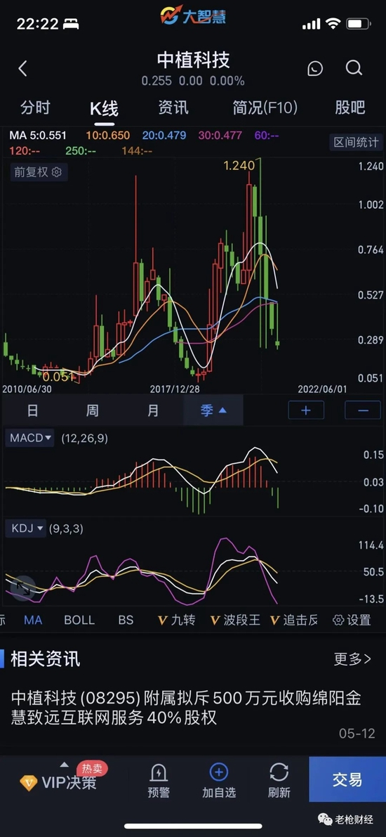 诡异的是,这个所谓实力雄厚的公司,在其官网上已经半年多没有什么活动记录,最近的一则公司新闻还是去年11月1日中植资本获奖的记录。而香港上市平台中植资本国际(HK 08295)已改名为中植科技,最新股价只有 0.255港币, 早已跌成仙股,总市值只有10亿港币出头。公司高管栏显示,蒋玉林尚担任该公司的执行董事和CEO之职。