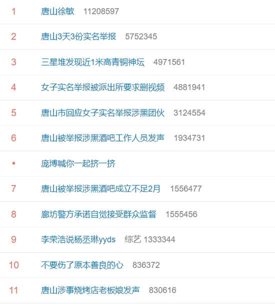 大家周末好,还没到开盘时间,我们继续来关注一下社会事件。今天“唐山”是彻底住在了热搜榜上了,全国关注的唐山烧烤店围殴女性案持续发酵,接着3天内就收到了3个实名举报。