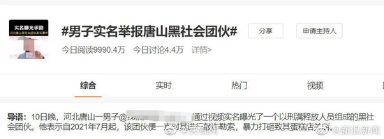 视频显示,该实名举报男子称,其住在唐山市路北区,经营了一家蛋糕店并以此为生。“我要实名曝光一伙以刑满释放人员为首的社会闲散人员,所组成的黑社会团伙。他们自2021年7月起至今,对我进行敲诈勒索。”