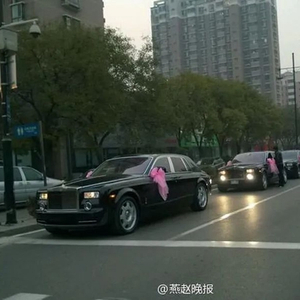 2007年的一列婚礼车队被媒体贴上‘史无前例’的标签,连号车牌的豪车倾城而出,宾利、劳斯莱斯、迈巴赫‘三巨头’云集,队伍以一辆悍马打头,一辆悍马收尾。