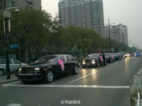 [3]《唐山最牛婚礼:30辆劳斯莱斯 婚宴每桌9999元》 来源:华商报