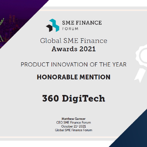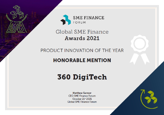 360数科连续第二年斩获,由世界银行集团成员国际金融公司(IFC)与全球中小企业金融论坛(Global SME Finance Forum)发起、G20全球普惠金融合作伙伴组织(GPFI)支持的2021年度“全球中小微企业金融奖”。