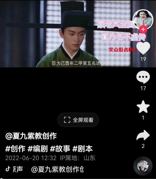 “趁现在手里的几个影视项目都没开机,我每天2/3的工作时间都投入到了自媒体上。”甚至上周出差时,夏九紫白天跟客户沟通,晚上回到住处还坚持在0点前更新了一条视频,“一旦项目开机,我可能会停止训练营招生和直播授课,干货视频我还会抽时间更新的。”