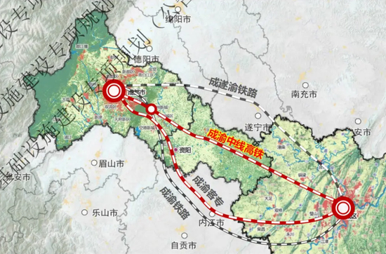 尤为值得一提的是,作为《成渝地区双城经济圈多层次轨道交通规划》中排在首位的新建干线铁路,成渝中线高铁全长292公里,是成渝间建设标准最高、运行速度最快的高等级高速铁路,“设计速度350公里/小时、预留400公里/小时”。