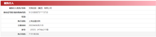中国执行信息公开网显示,6月21日,密春雷、上海览海投资有限公司、览海控股(集团)有限公司新增被执行案件,执行标的约7.19亿元,执行法院为上海市金融法院,案号均为(2022)沪74执215号。