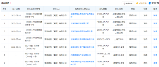 除此之外,因司法协助,览海控股所持的相关股权遭冻结。