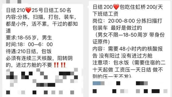 “急招分拣员”,“日结200元/天”,“4月1日以后阳过的不要”,“没有进过方舱”。近日社交平台中流传着这样的招聘信息,无疑给既往感染新冠肺炎的求职者造成困难。