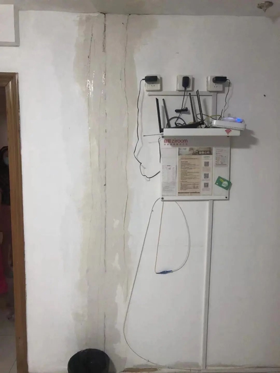 顶层的漏雨通过墙壁缝隙流到王女士家的照明开关。