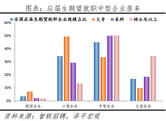 最期望就职国企,期望就职中小微企业的应届生较去年有所增多。