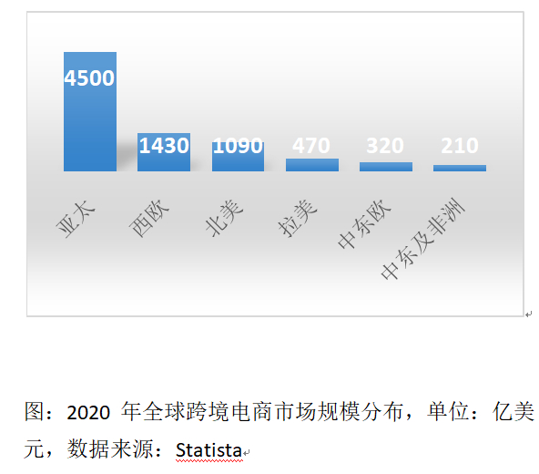 2020年,亚太地区跨境电商市场的规模达到4500亿美元,占全球跨境电商市场的53.6%,领先全球。中国与东盟的贡献功不可没。2017年以来中国跨境电商进出口增长近10倍,2020、2021两年分别达到1.69万亿元和1.92万亿元,同比增长31.1%和18.6%;对全部货物进出口总额的占比达到或超过5%。2021年,跨境电商相关企业新增1万家,占总数的近三分之一,带动了中小微企业的成长和就业。2022年,中国的跨境电商继续保持迅速增长势头,不仅对发达经济体的出口保持稳定,对新兴市场的出口也实现了快速提升。今年以来,中国对东盟的跨境电商出口增长了98.5%。