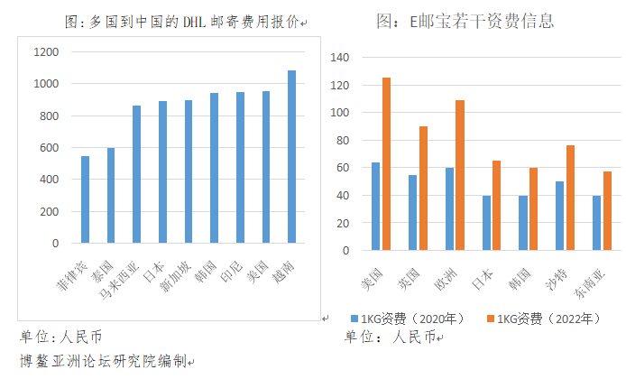 首先,新冠疫情延宕、俄乌冲突和全球通胀给跨境物流和海外仓建设带来很大冲击,影响跨境电商发展与合作。近两年,跨境电商直发业务所依赖的国际小包货运和邮政寄送业务成本上升,时间延迟;海外仓建设则遇到供货不足和后续服务跟不上等问题,制约了跨境电商业务的快速发展。从大型跨国快递企业(如DHL)的报价来看,从东南亚国家寄送到中国的私人包裹(1公斤)的报价在600~1000元的区间,耗时约12天,中国邮寄到东南亚国家的报价在1000元左右。2022年,全球邮政资费相比2020年涨幅超过40%。