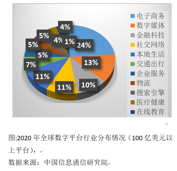 预计到2022年,全球电商销售额将首次突破5万亿美元关口,中国占据近半数的份额。预计到2025年,全球电商销售额将达到约7.4万亿美元。从数字平台的行业分布看,2020年全球超过100亿美元的全球数字平台中,24%的数字平台集中于电商业务。中国和东盟涌现出具有国际影响力的跨国平台,又有符合地区市场特色、专注某些细分市场的中小平台(如东南亚专注于电子3C、服装时尚等领域的Shopee和Lazada)等。