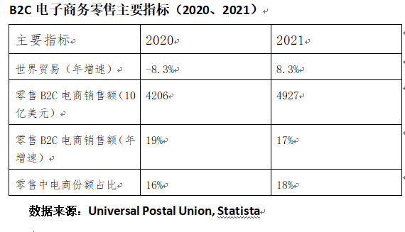 从全球电商交易额来看,2021年,电子商务零售额达到4.9万亿美元,同比增速为17%,是全球贸易增速的两倍,有望在2021~2023期间保持年均9%的增速。
