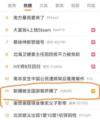 “新疆被全国游客挤爆了”!周一一大早,新疆旅游登上了微博热搜。