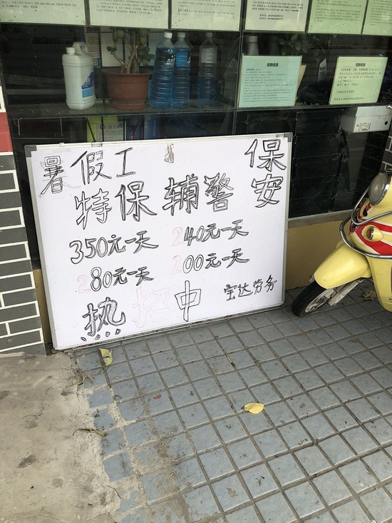 另一名劳务中介在电脑前忙碌,他抬头说:“阳过的现在只有达丰要,浦东的昌硕也要,(我们这里)就这两家。”接着他开始推介,进达丰(电脑有限公司)挺好的,工资高,疫情后达丰的平时和周末加班费都比疫情前高出一截,“一个月能拿一万多,要进的话赶紧”。