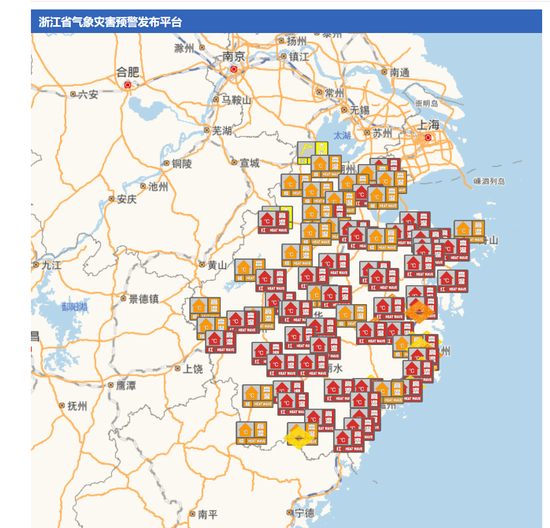 23日,浙江成为全国高温重心。上午11时30分,浙江大部已被高温覆盖,高温红色预警多达36条,11时全国高温排行榜前10位被浙江垄断。