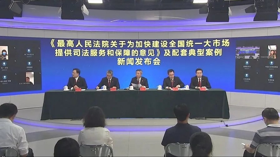 《最高人民法院关于为加快建设全国统一大市场提供司法服务和保障的意见》及配套典型案例新闻发布会7月25日举行。