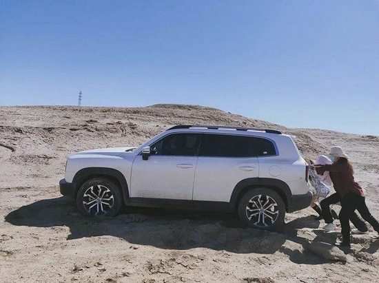 Iris和同伴在戈壁上推车 / 受访者供图