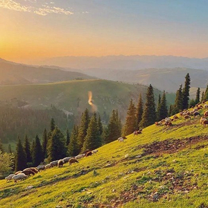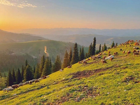 抵达伊犁的第二天晚上,花花在朋友圈发了这次新疆旅行的第一组照片:广袤的巴音布鲁克大草原,河流蜿蜒向远方天际,牛羊成群在山坡踱步,落日余晖美不胜收。