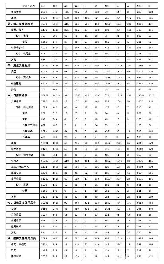 表2商品大类投诉量变化表
