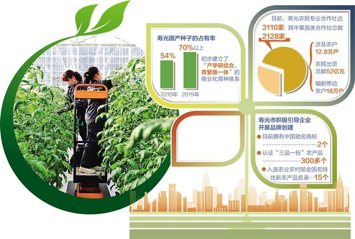 在寿光,既有中国农业科学院、中国农业大学等国字号科研平台,以及先正达、瑞克斯旺等国际一流种企,又有三木种苗、潍坊科技学院蔬菜种子研发中心等本地种企和研发中心,多种力量强强联合,国产种子的占有率由2010年的54%提升到2019年的70%以上,初步建立了“产学研结合、育繁推一体”的商业化育种体系,成为潍坊国家农业开放发展综合试验区的蔬菜种业创新示范区。