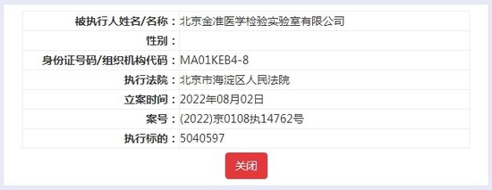 中国执行信息公开网显示,北京金准医学检验实验室有限公司8月2日新增一条被执行人信息,执行标的504.06万。